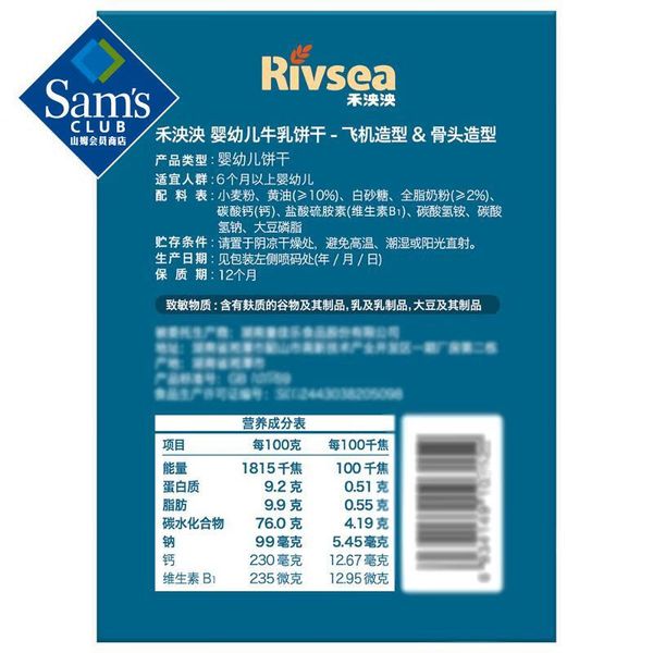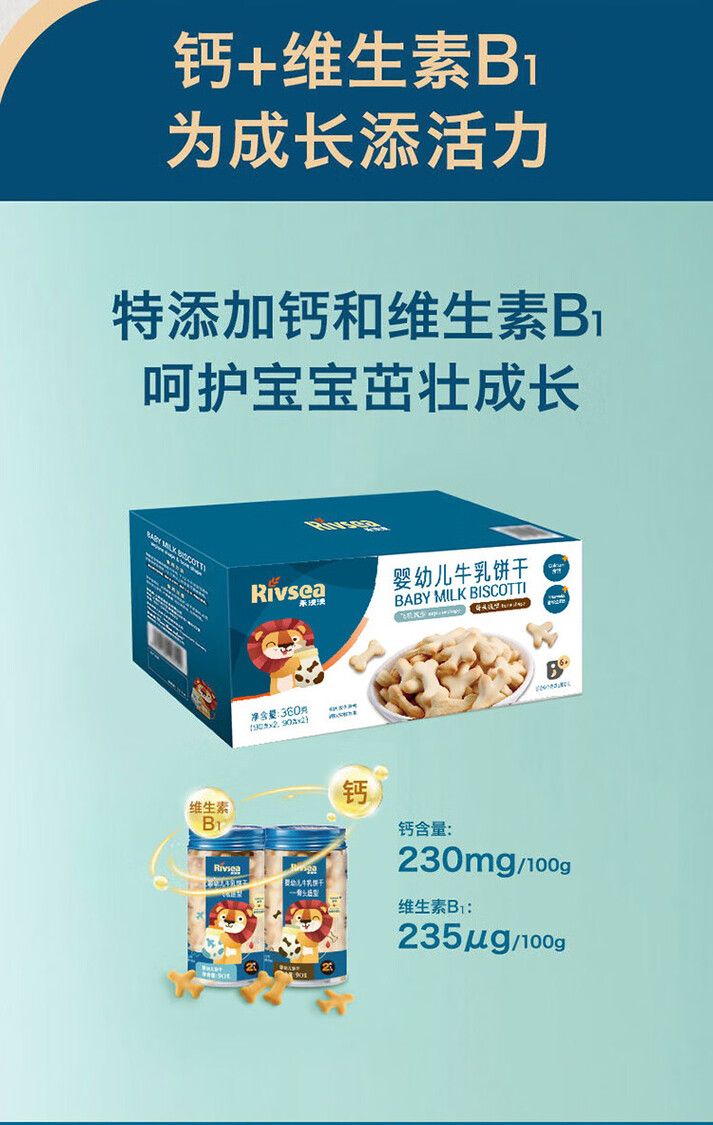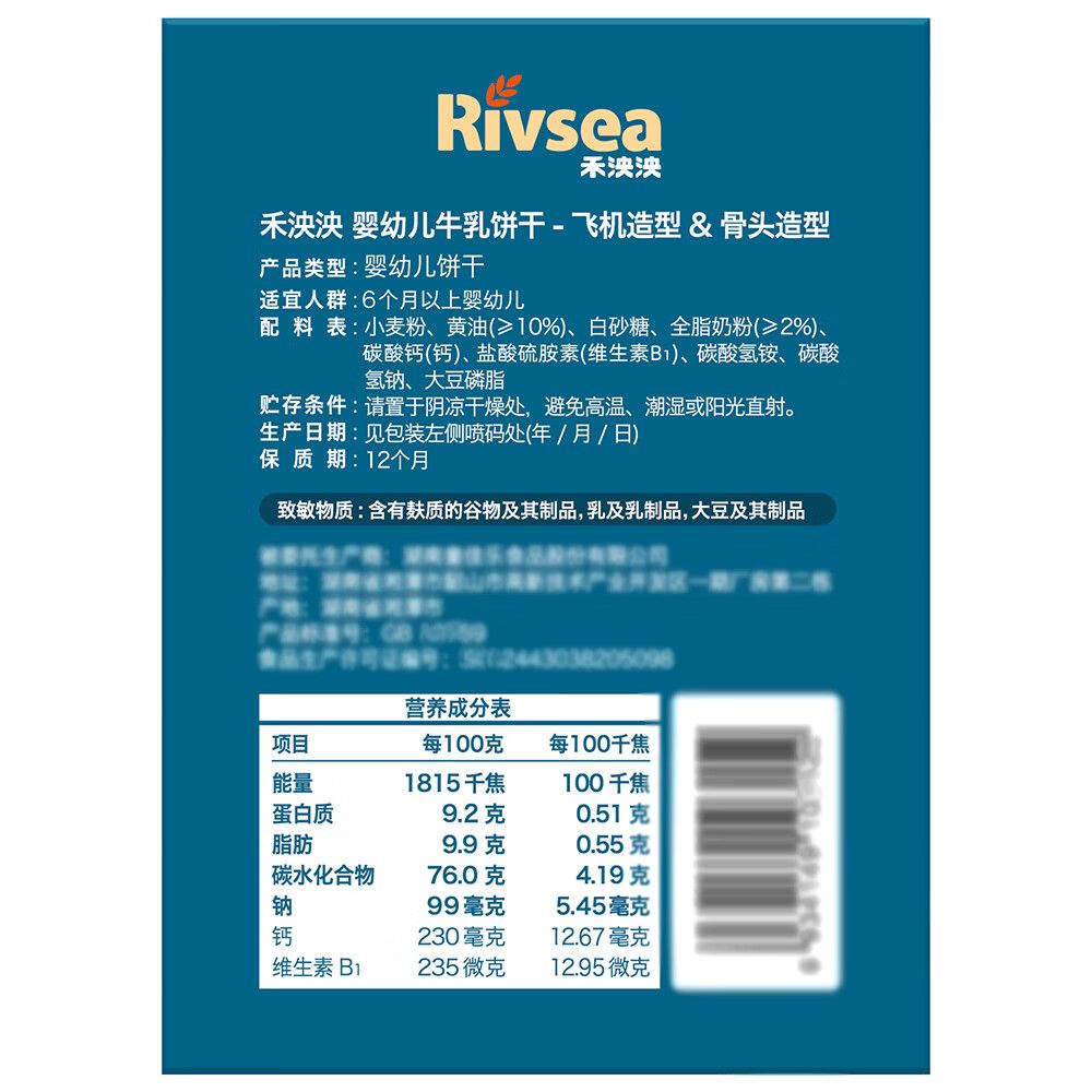 禾泱泱Rivsea婴幼儿牛乳饼干飞机造型骨头造型、360g90g*2+90g*2适用年龄大于7个月