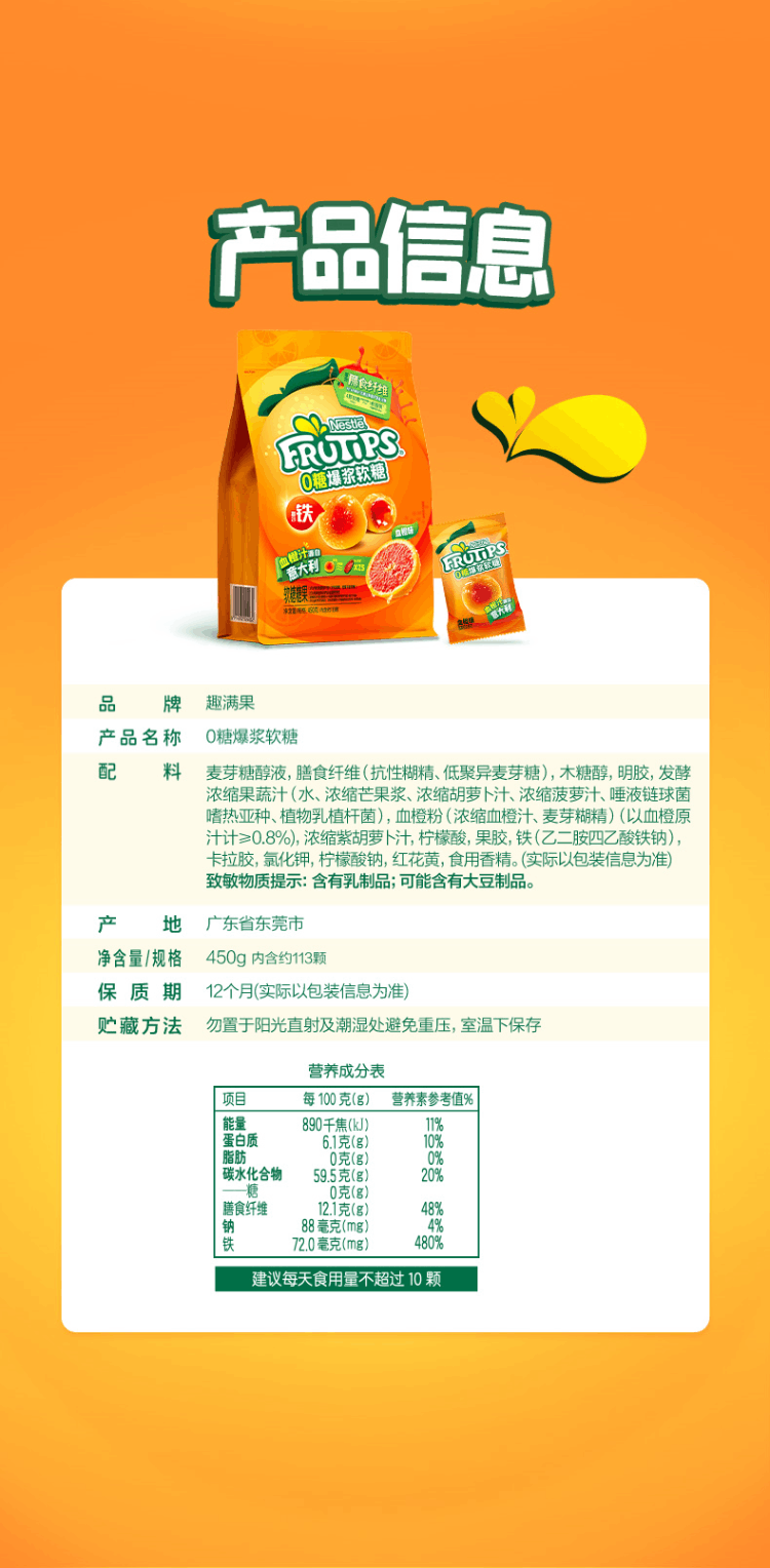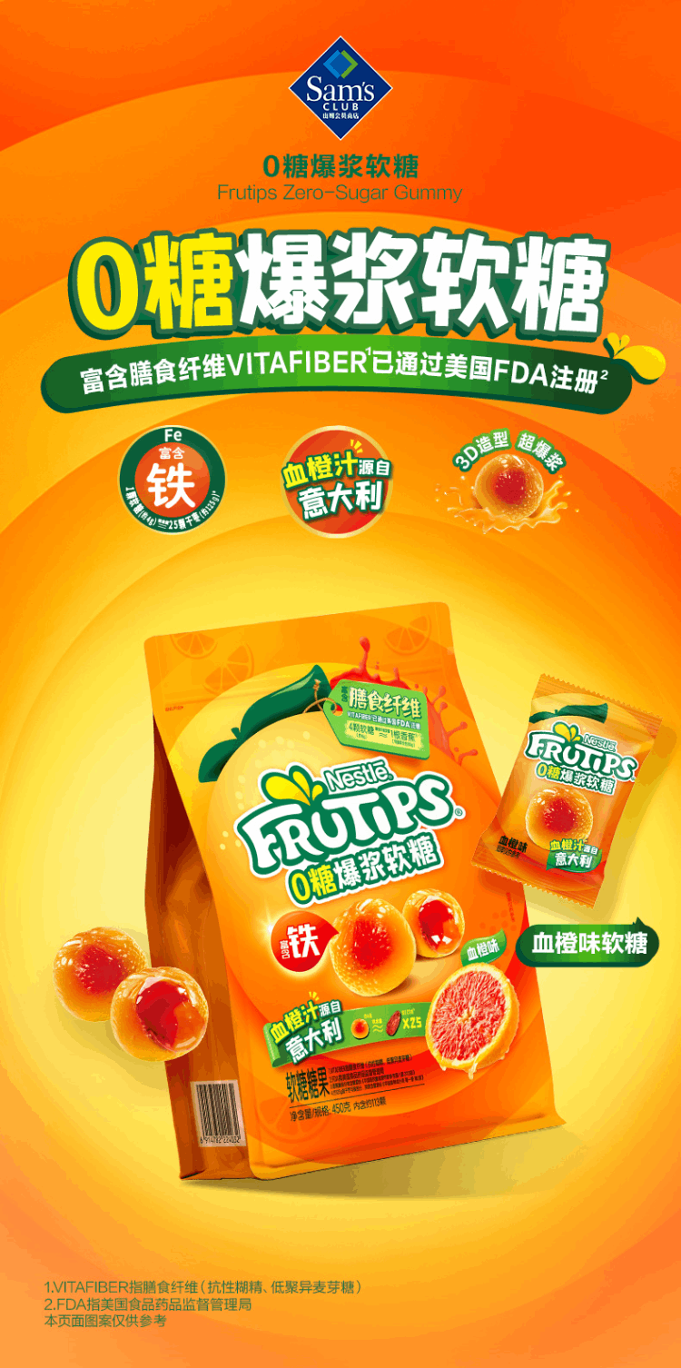 雀巢 (Nestle)趣滿果0糖爆漿軟糖血橙味 450g 山姆代購山姆正品專業代購