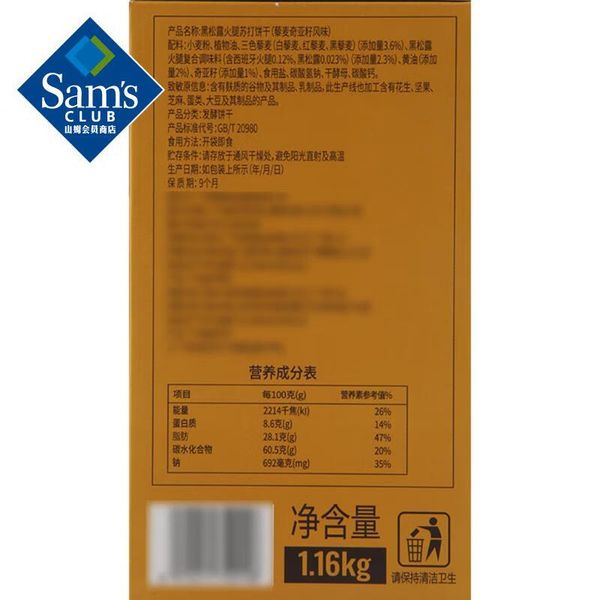Tafe黑松露火腿苏打饼干藜麦奇亚籽风味山姆代購專業代購正品代購山姆代購專業代購正品代購