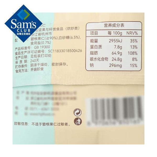 山姆杭派山姆碧根果仁五百克一袋山姆代購山姆正品專業代購