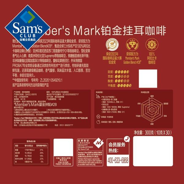 Member_s Mark 铂金挂耳咖啡三百克山姆代購山姆正品專業代購