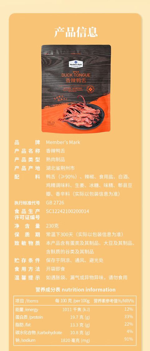 Member_s Mark 香辣鸭舌二百三十克山姆代購正品代購專業代購.