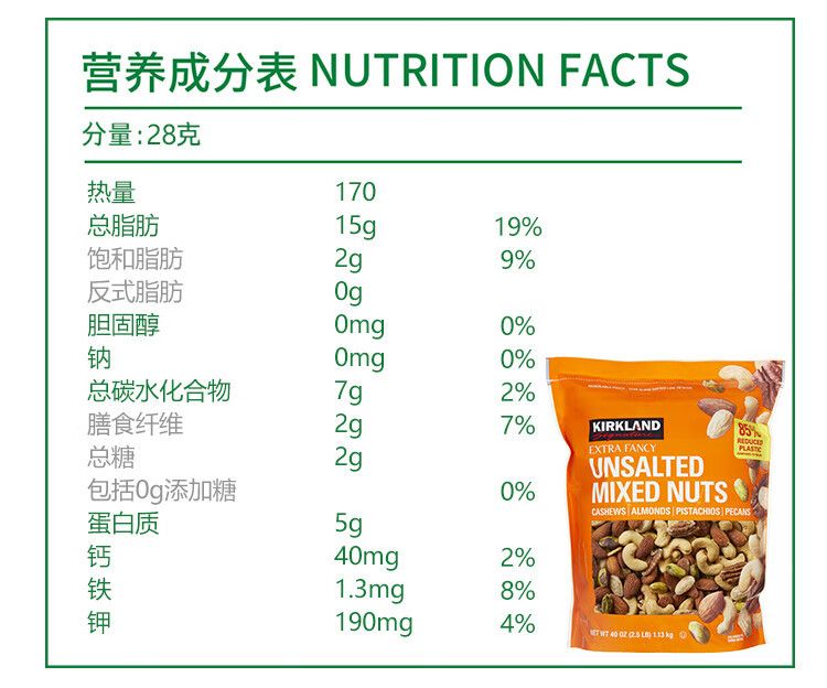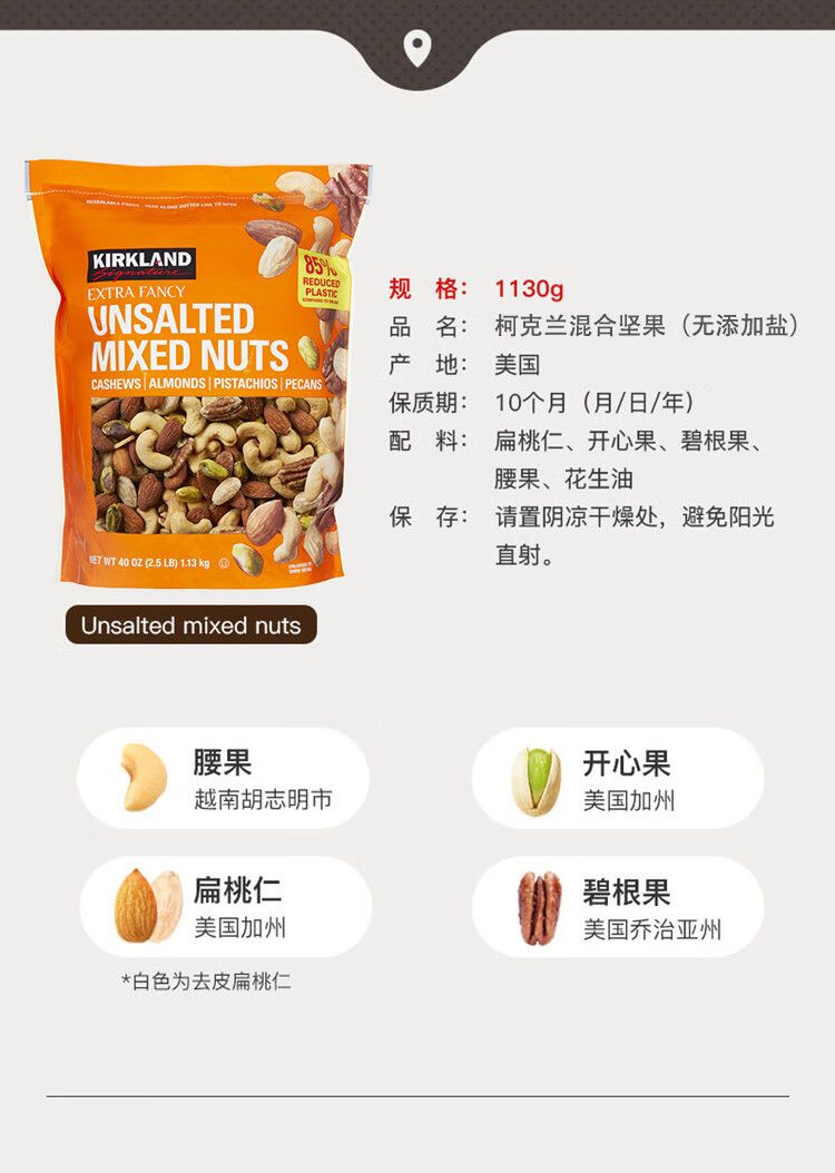 柯克蘭(Kirkland)無鹽原味混合堅果1.13kg進口開心果孕婦休閑零食禮包Costco分享裝Costco代購Costco正品代購Costco專業代購