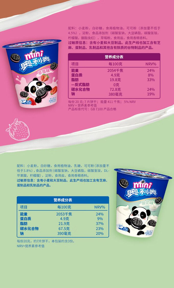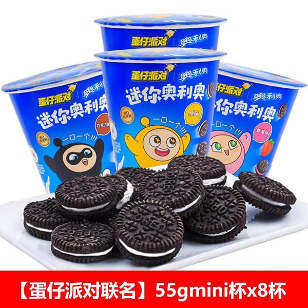 奧利奧mini迷你夾心小餅幹杯裝 兒童休閑零食 多口味混搭55g*8杯(四種口味)