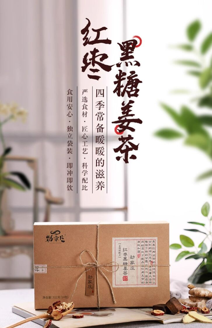 勁家莊--何家勁紅棗黑糖姜茶單獨小包裝棗生姜湯汁水黑糖塊322克/盒