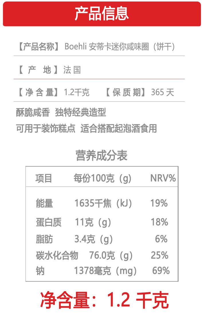COSTCO BOEHLI安蒂卡迷你鹹味圈餅幹 1200G法國進口蝴蝶型蛋糕裝 Costco代購Costco正品代購Costco專業代購