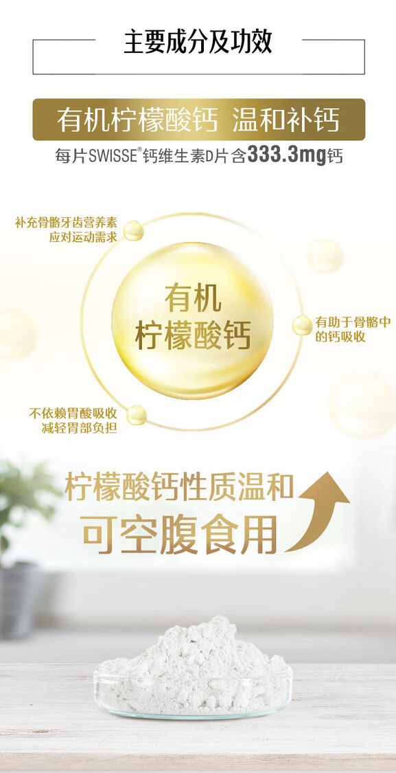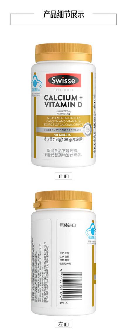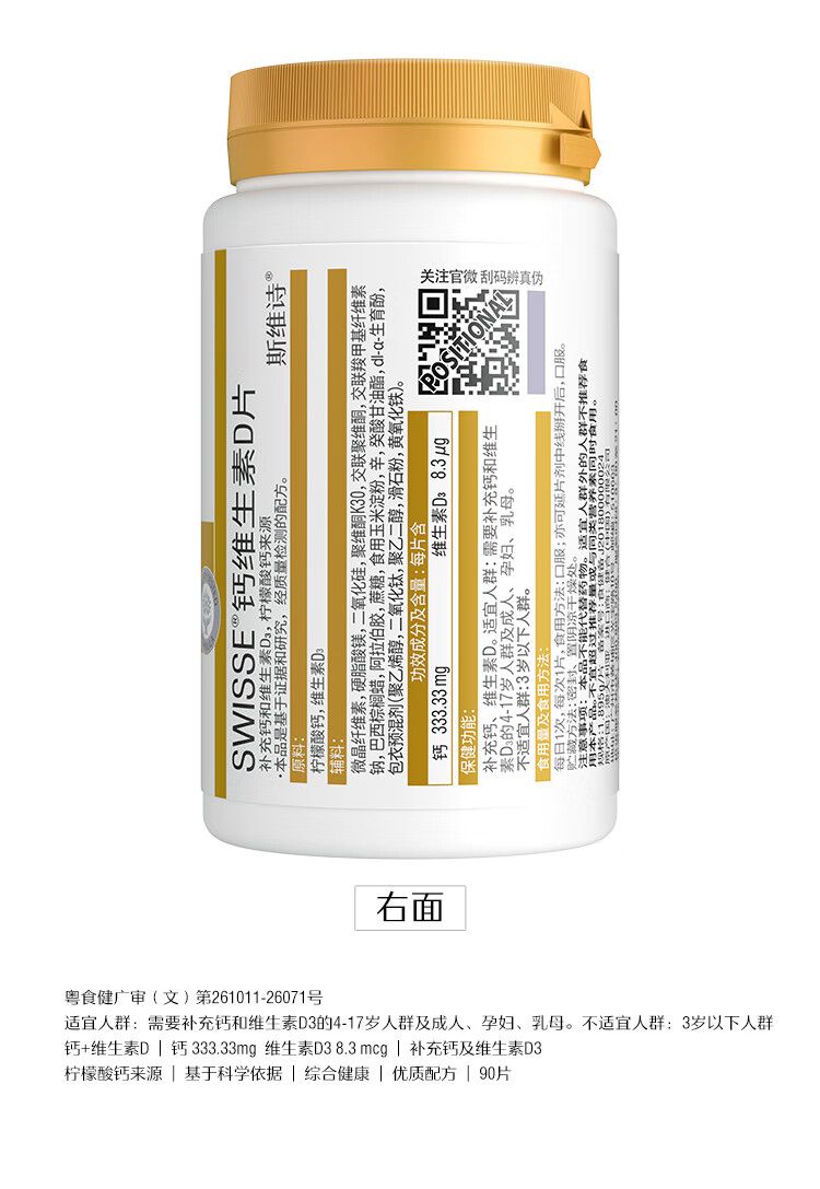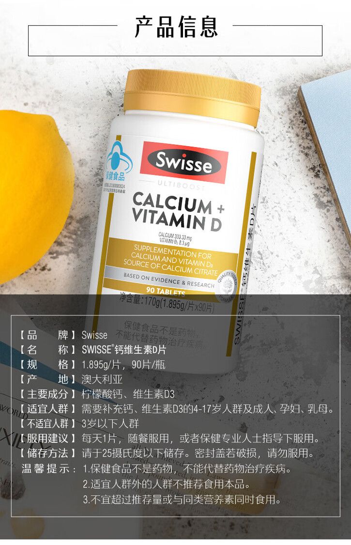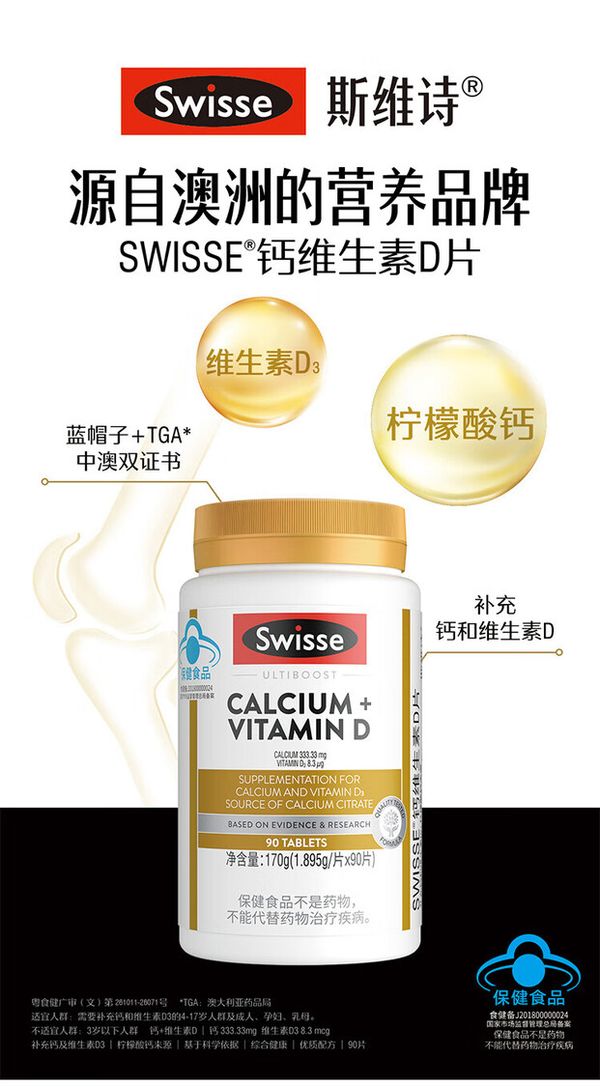 斯維詩(Swisse) 澳大利亞進口 鈣維生素D片 170g(1.895g/片*90片)山姆正品專業代購
