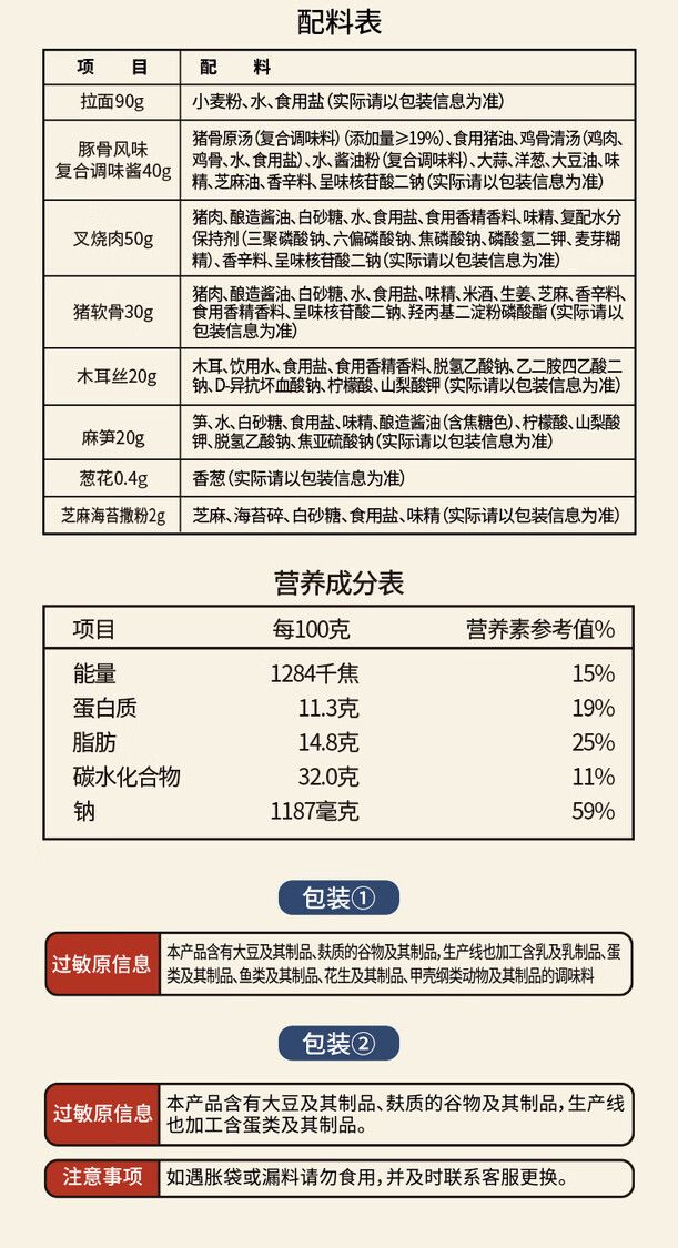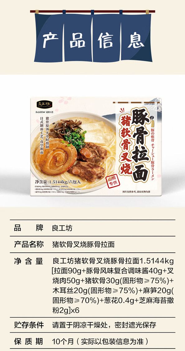 良工坊 豬軟骨叉燒豚骨拉面 1.5144kg(6包入) 山姆Sam’s Club正品專業代購