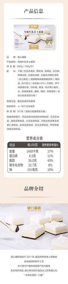 諾心蛋糕 雪域牛乳芝士蛋糕 600克(6枚裝)山姆Sam's Club正品專業代購 山姆正品專業代購