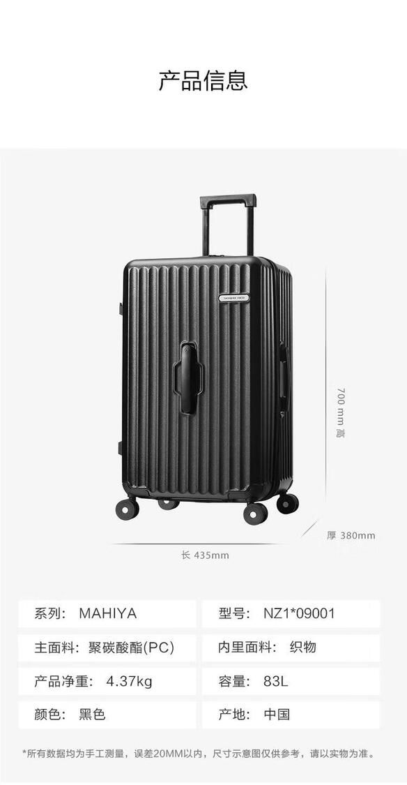 新秀麗(Samsonite)行李箱四輪旋轉拉桿箱 26寸黑色旅行箱 山姆Sam’s Club正品專業代購
