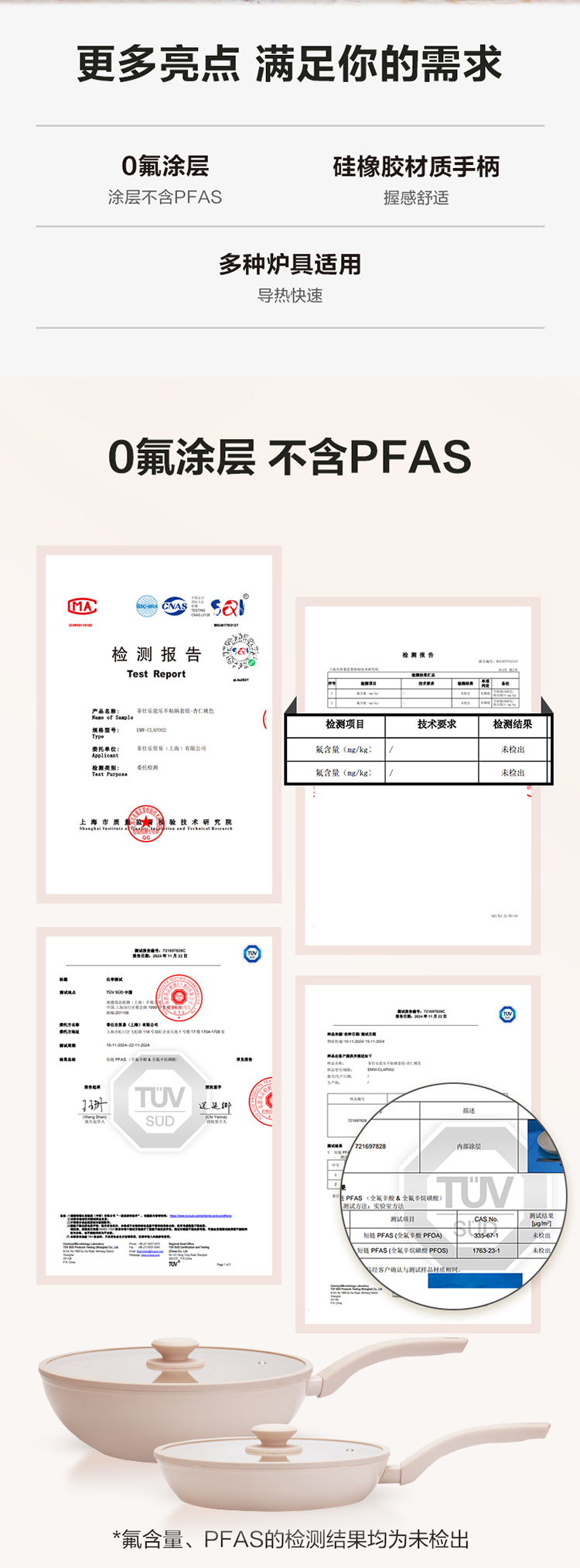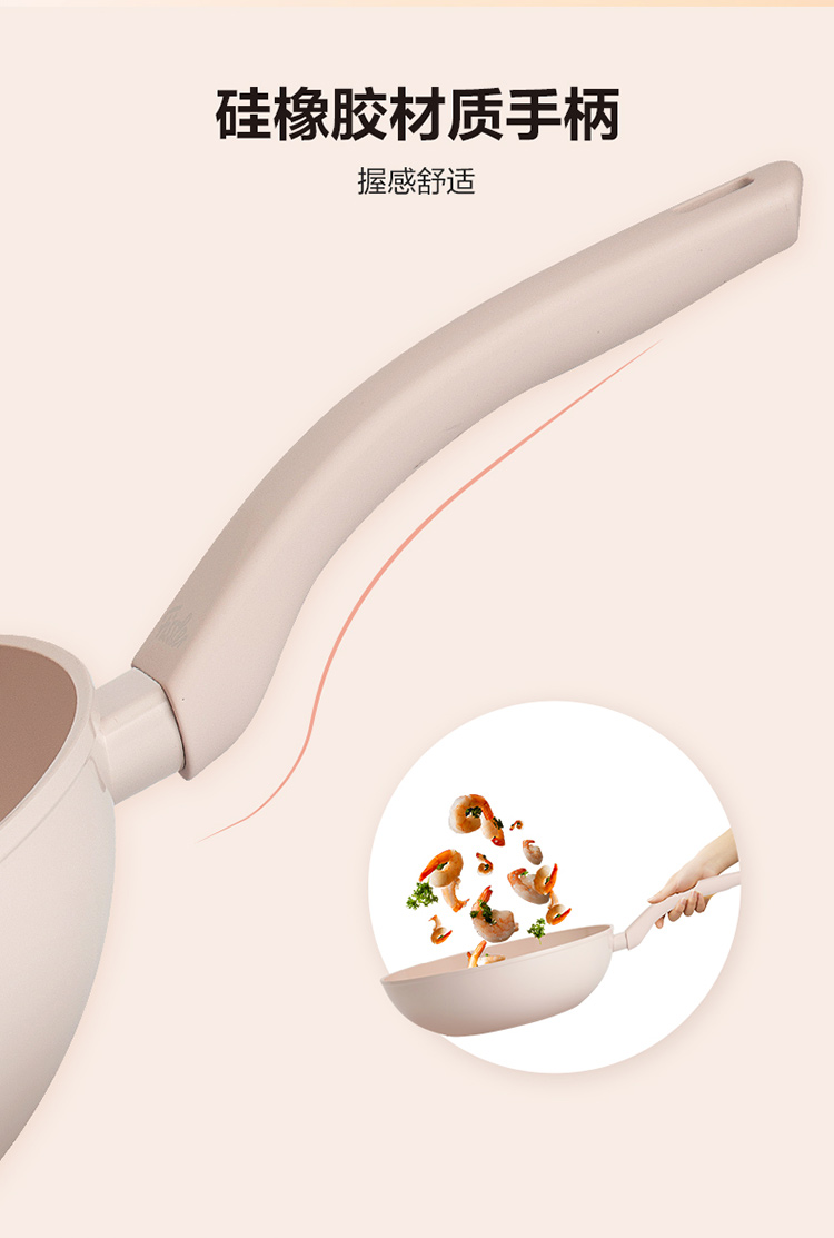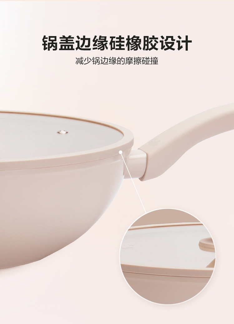 顺滑不粘易清洁;锅盖边缘硅胶设计