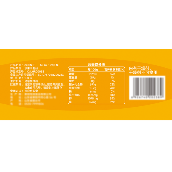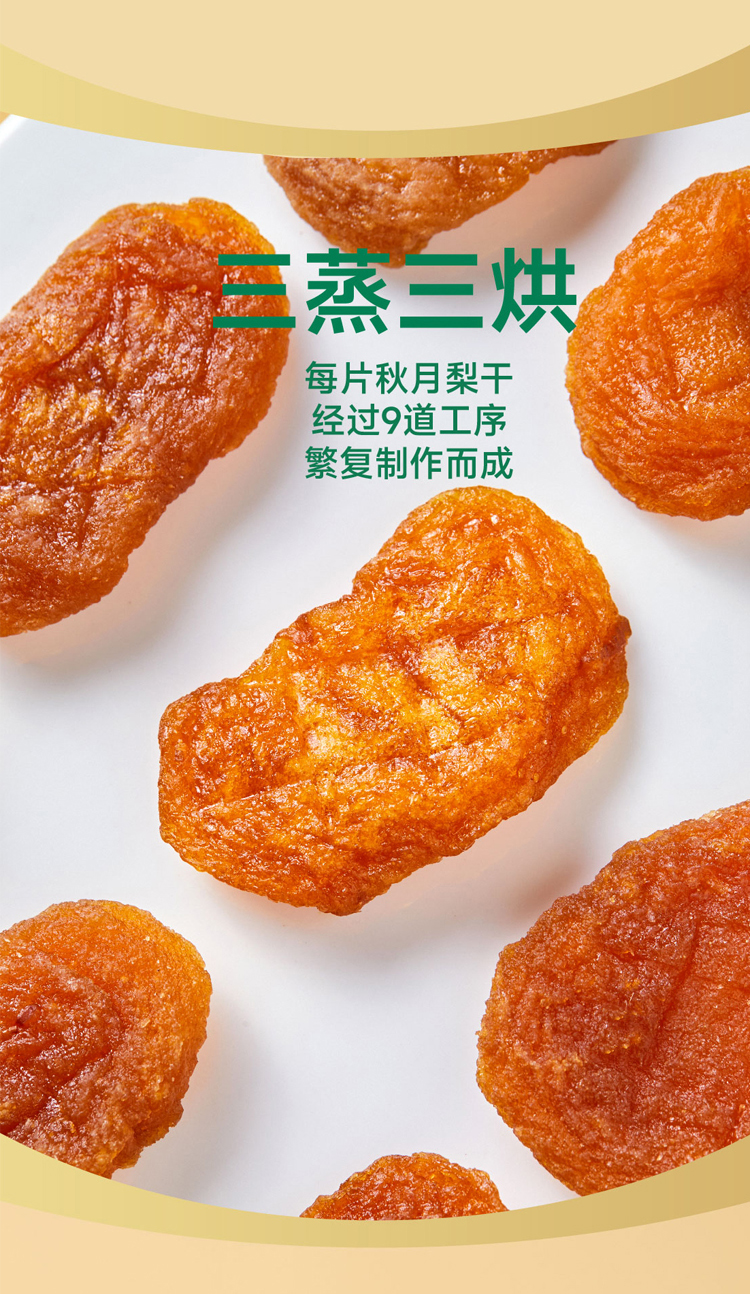 精选莱阳90#大尺寸秋月梨;一块梨干约等于半个秋月梨