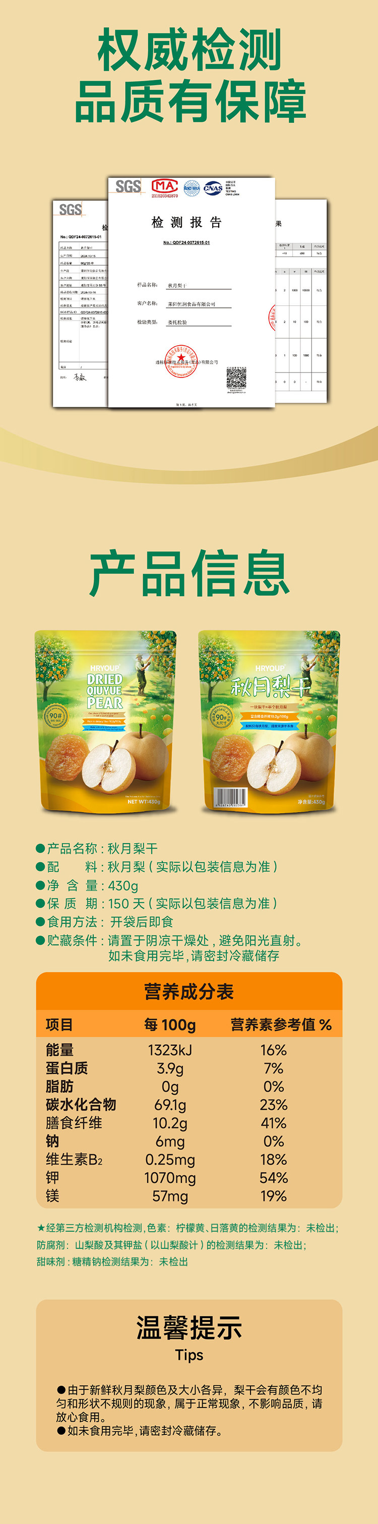 HRYOUP 秋月梨幹 430g 山姆Sam’s Club正品專業代購
