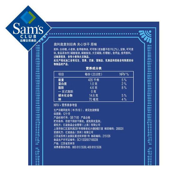 奥利奥/Oreo 复刻经典夹心饼干原味 832g 山姆Sam’s Club正品專業代購