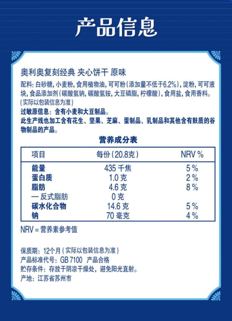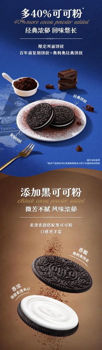 复刻版奥利奥,致敬经典;饼皮多增加40%可可粉,经典浓郁