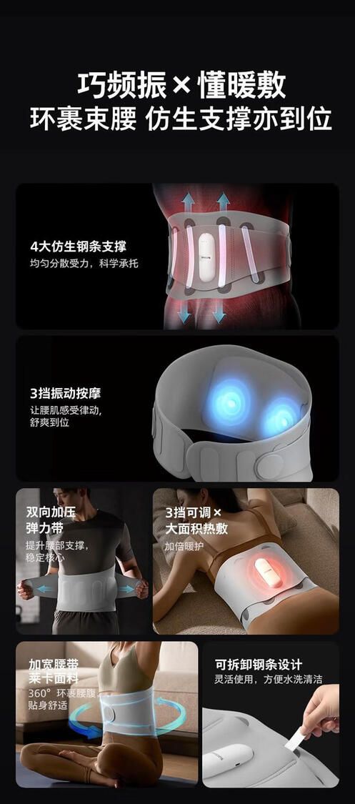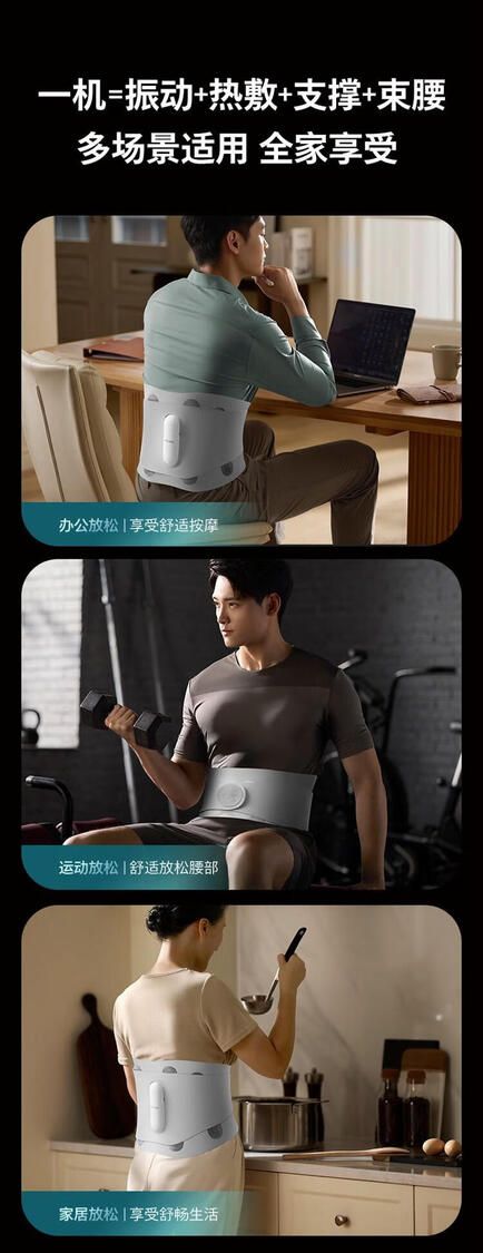 三档震动按摩 舒缓肌肉 亲肤舒适轻薄高弹面料 四大钢条加压设计支撑腰部