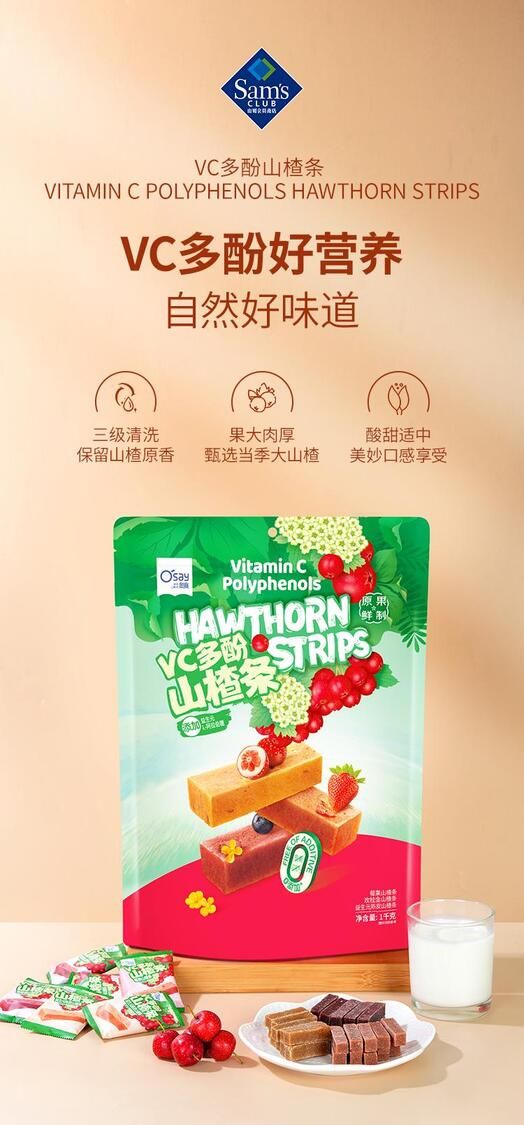 奧賽 VC多酚山楂條 1kg*1袋 山姆Sam’s Club正品專業代購