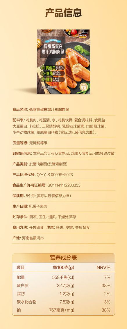 低脂高蛋白爆汁雞胸肉腸 1kg*1袋山姆Sam's Club正品專業代購 山姆正品專業代購