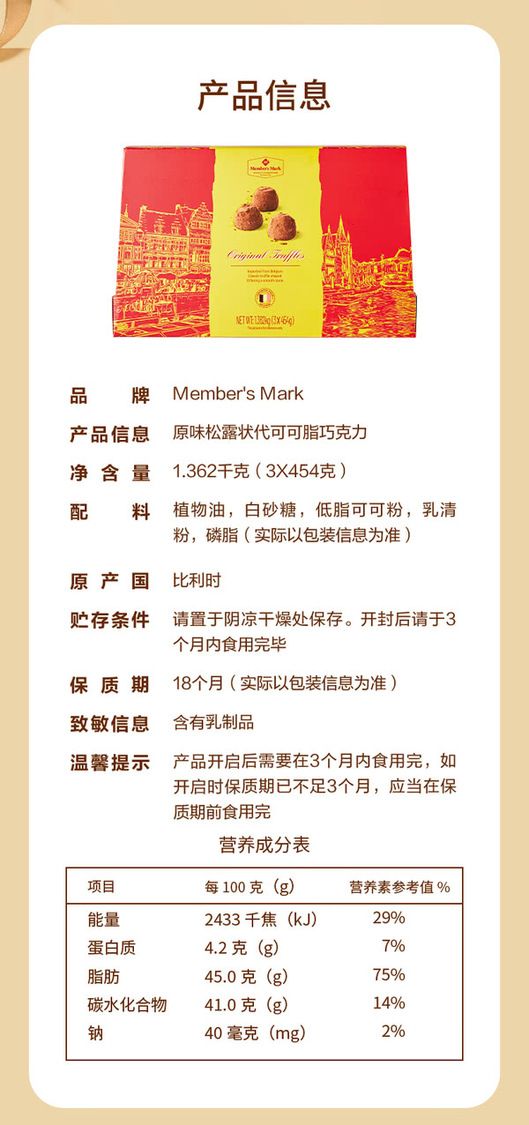Member's Mark 原味松露狀代可哥脂巧克力(3*454g)山姆Sam's Club正品專業代購 山姆正品專業代購