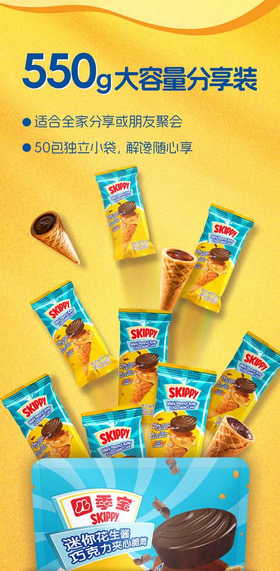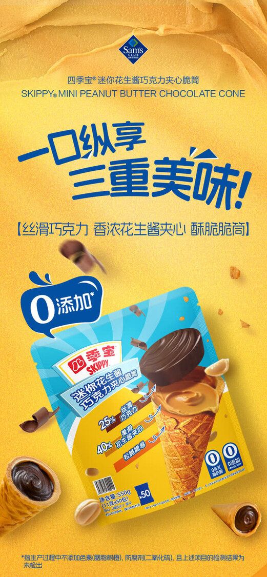 四季寶 迷你花生醬巧克力夾心脆筒550g 1袋山姆Sam's Club正品專業代購 山姆正品專業代購