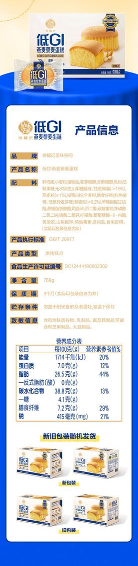 徐福記 低GI燕麥藜麥蛋糕 760克(30個) 760g山姆Sam's Club正品專業代購 山姆正品專業代購