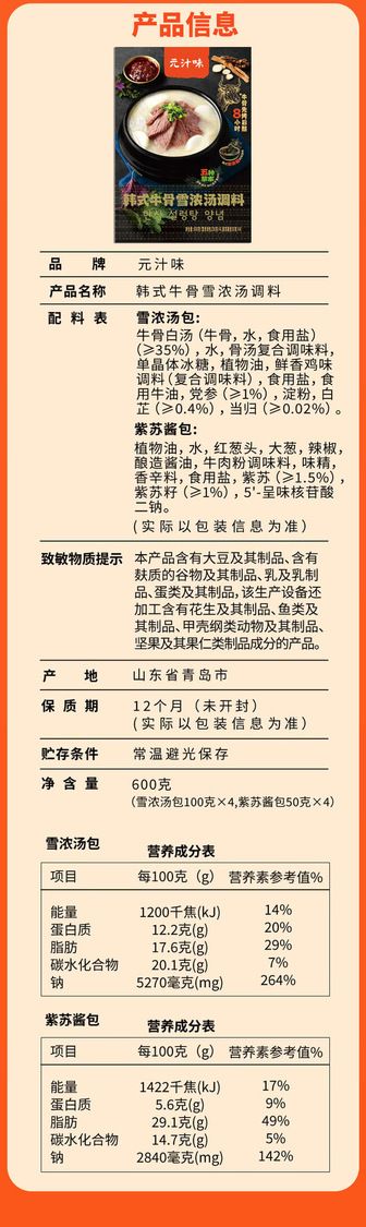 元汁味韓式牛骨雪濃湯調料山姆Sam's Club正品專業代購 山姆正品專業代購