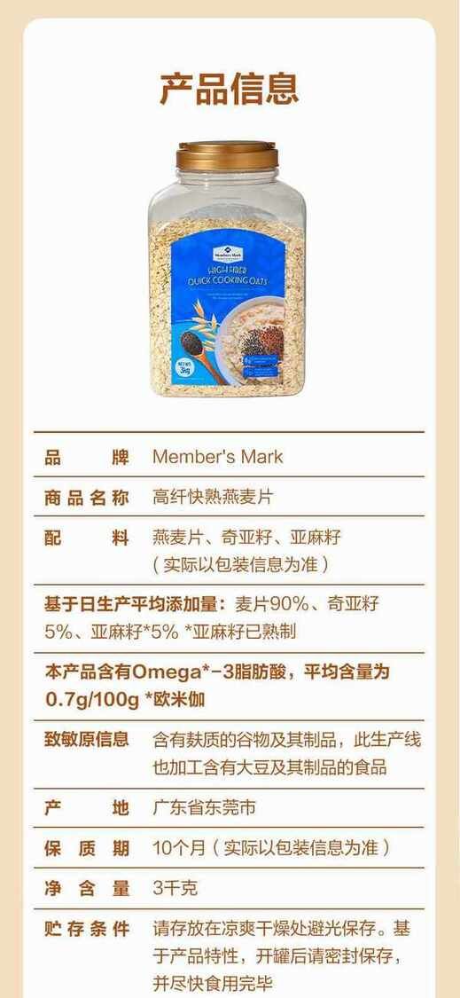 Member's Mark高纖快熟燕麥片3kg山姆Sam's Club正品專業代購 山姆正品代購