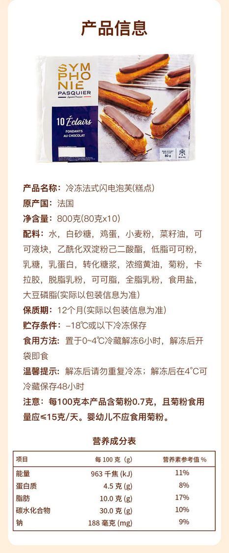 SYMPHONIE PASQUIER冷凍法式閃電泡芙(糕點)800克(80克*10)山姆Sam's Club正品專業代購 山姆正品專業代購