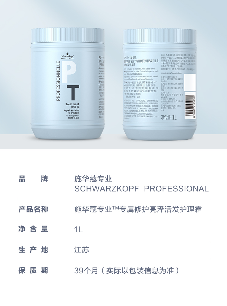 施華蔻專業(SchwarzkopfProfessional)專屬修護亮澤活發護理霜 1L山姆Sam's Club正品專業代購 山姆正品專業代購