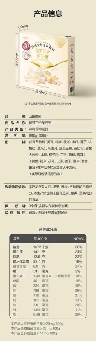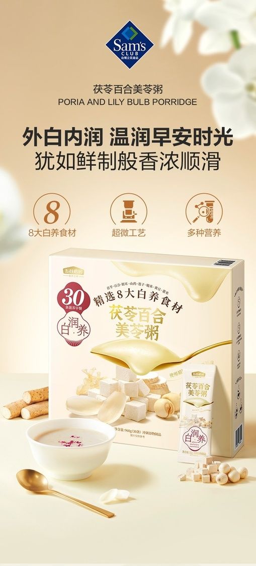 五穀磨房 茯苓百合美苓粥 960g(30條)山姆Sam's Club正品專業代購 山姆正品專業代購