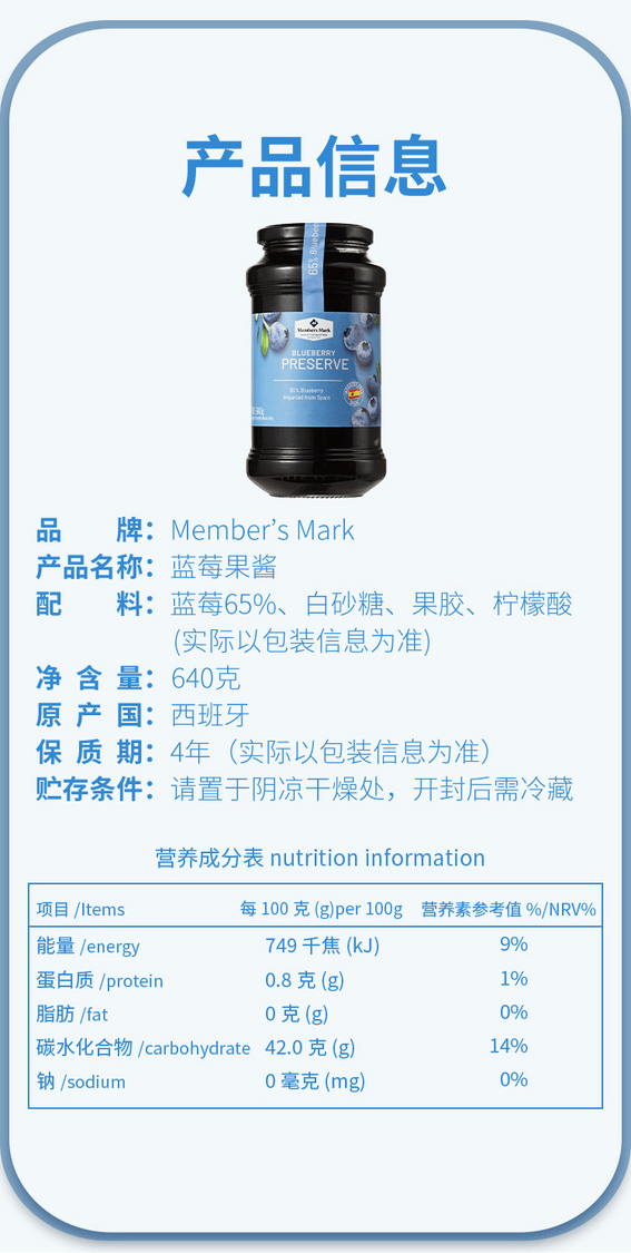 Member's Mark 西班牙進口 (草莓果醬640g+藍莓果醬640g) 山姆Sam’s Club正品專業代購