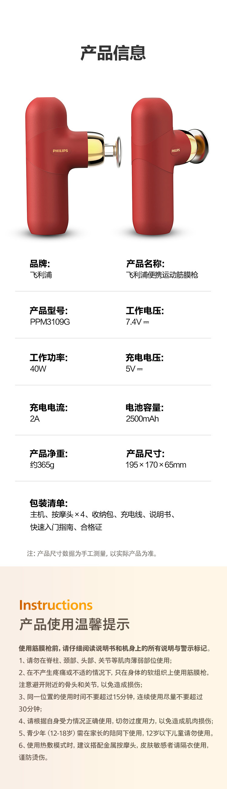 飛利浦(Philips)便攜運動筋膜槍 PPM3109G按摩棒 Sam’s Club正品專業代購