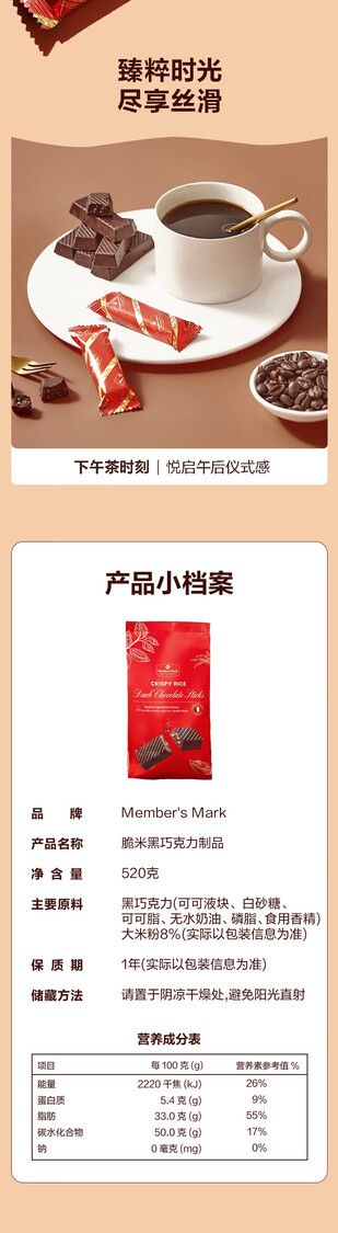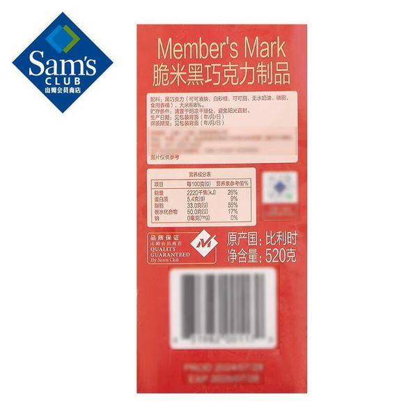 Member's Mark 比利時進口 脆米黑巧克力製品 520g 山姆Sam’s Club正品專業代購
