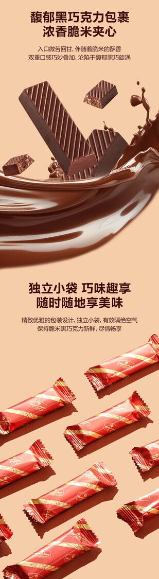 比利时进口,香浓黑巧克力包裹香脆夹心,独立包装便携易分享
