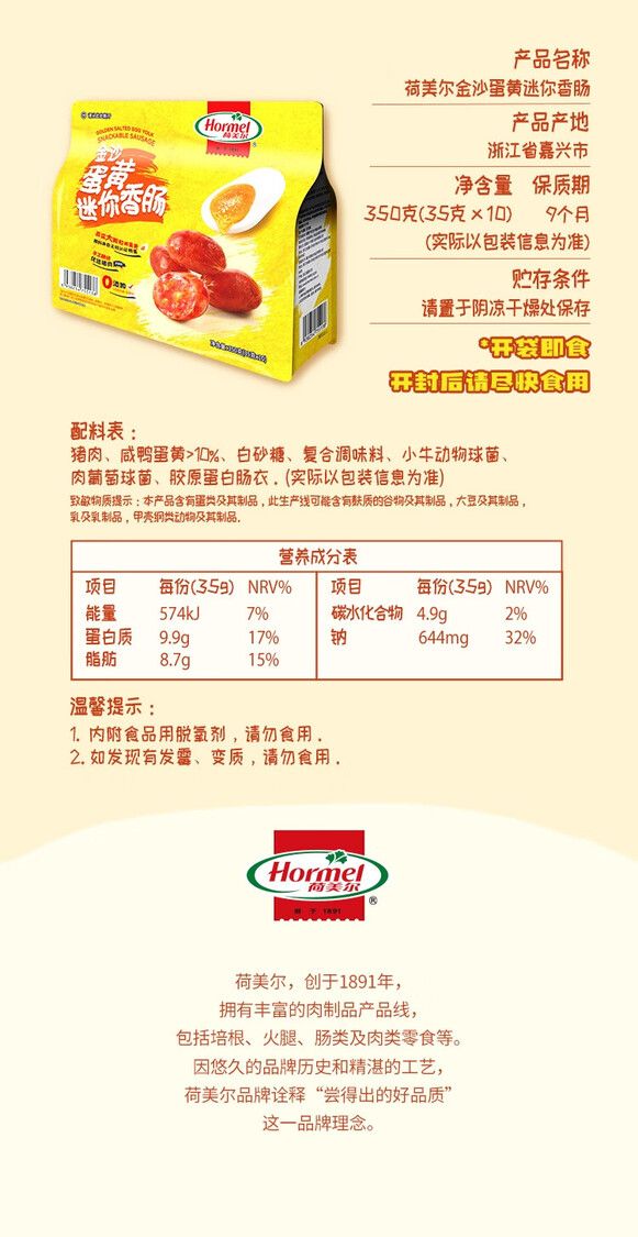 荷美爾 金沙蛋黃迷你香腸 350克 (35克*10) 山姆Sam’s Club正品專業代購