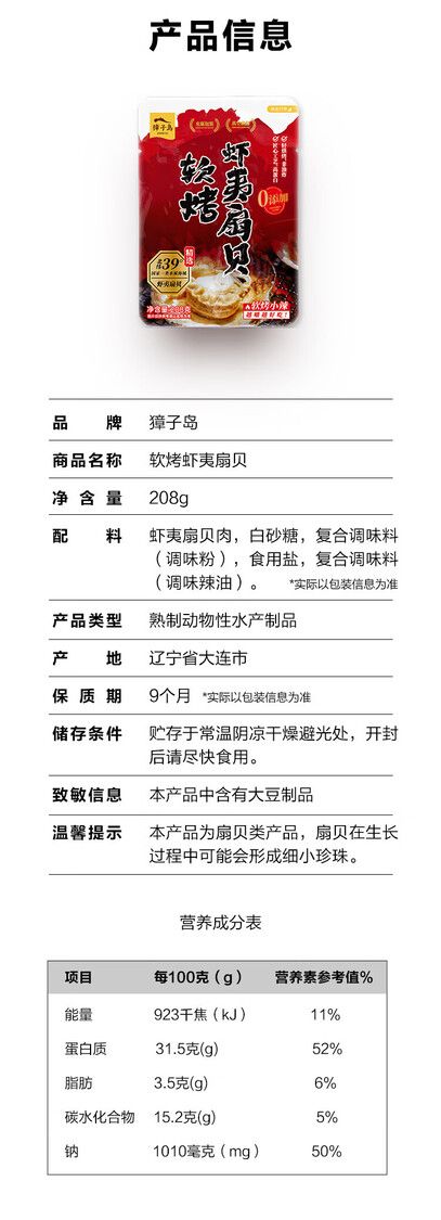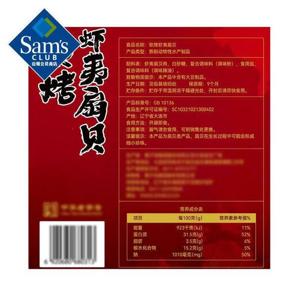 獐子島軟烤蝦夷扇貝 208g 燒烤味 山姆Sam’s Club正品專業代購