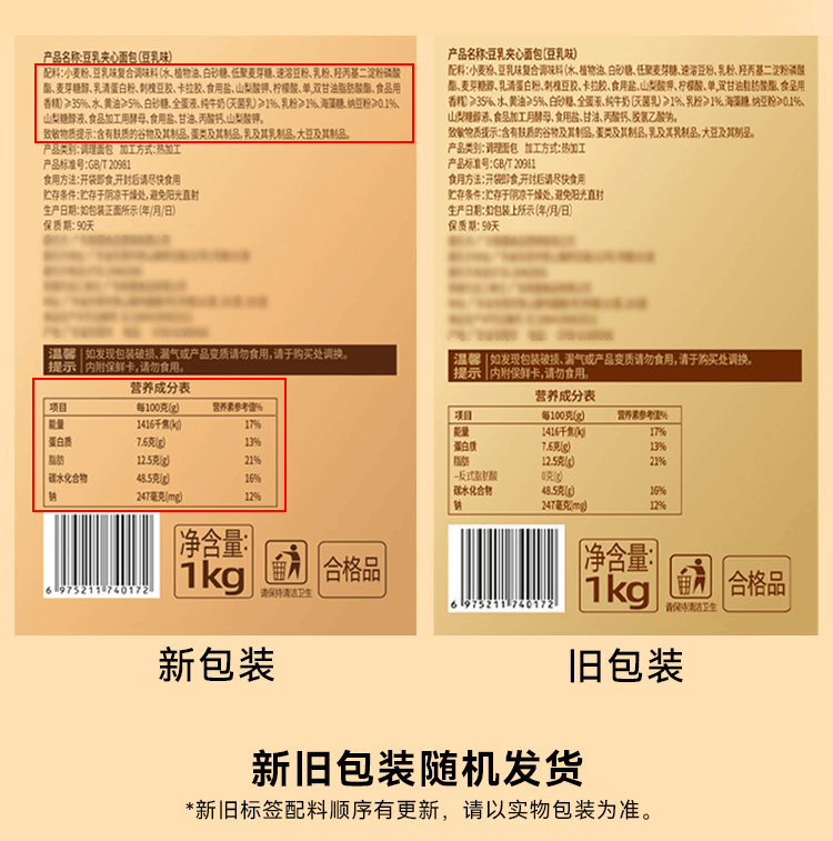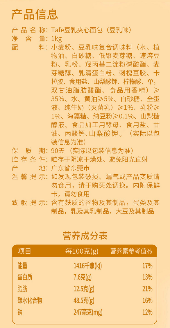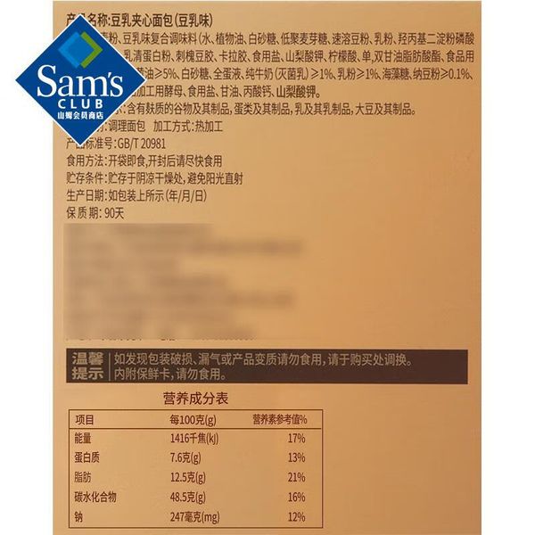 添加豆乳味馅料 添加量>35%,≥5%新西兰安佳黄油,添加纯牛奶奶香与豆乳清香完美融合