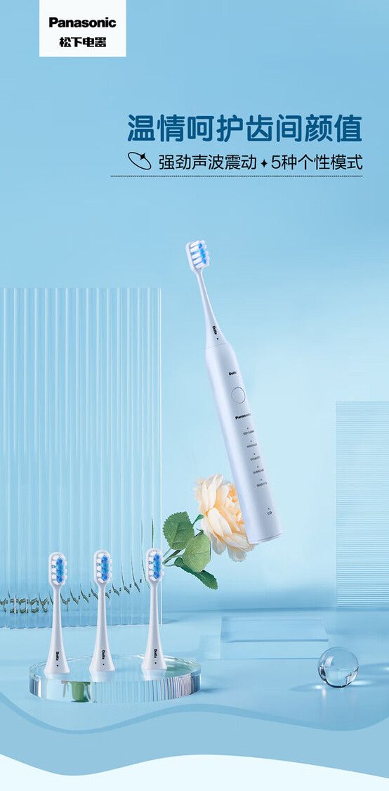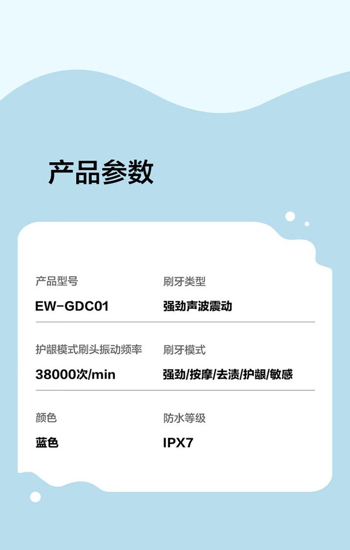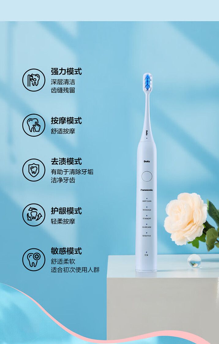磁悬浮声波动力38000次/分钟 配4个细毛刷头 5种刷牙模式 IPX7级防水