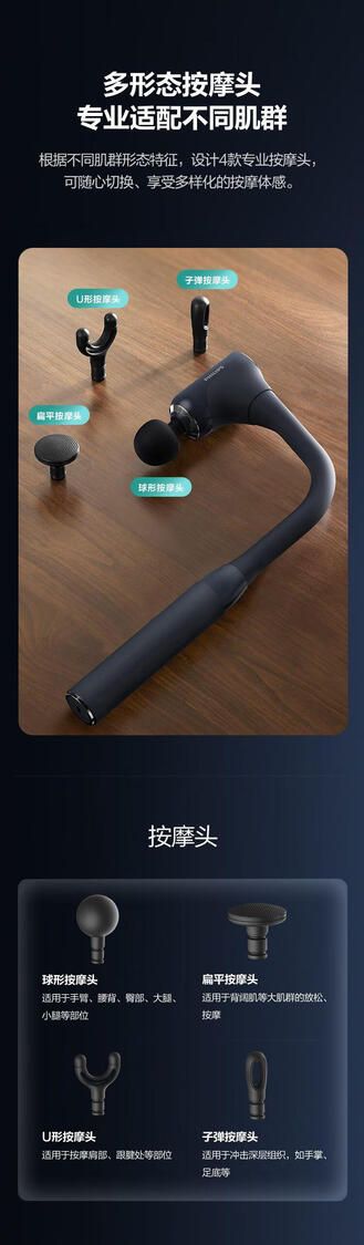 4大按摩配件 直抵肌肉酸痛点 手柄加长 方便持握 弹性脖子设计 升级按摩体验