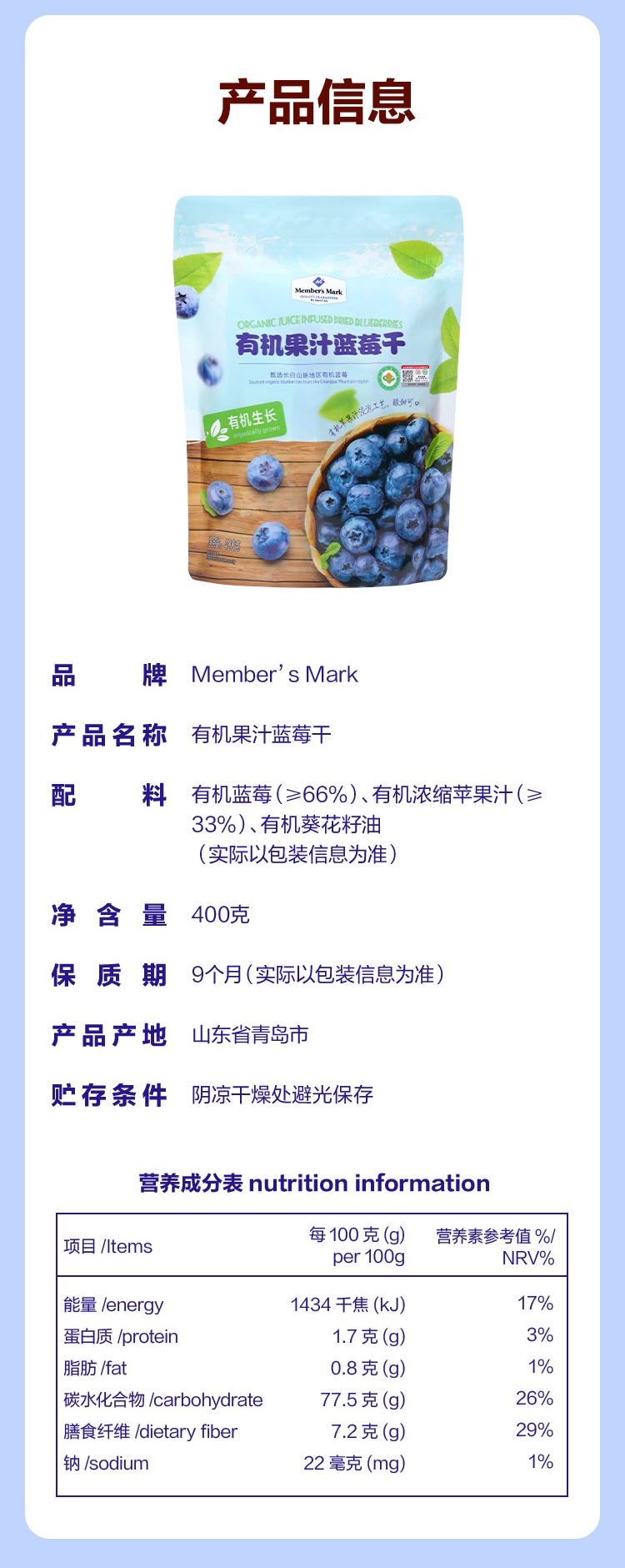 Member's Mark 有機果汁藍莓幹 400g 袋 山姆Sam’s Club正品專業代購