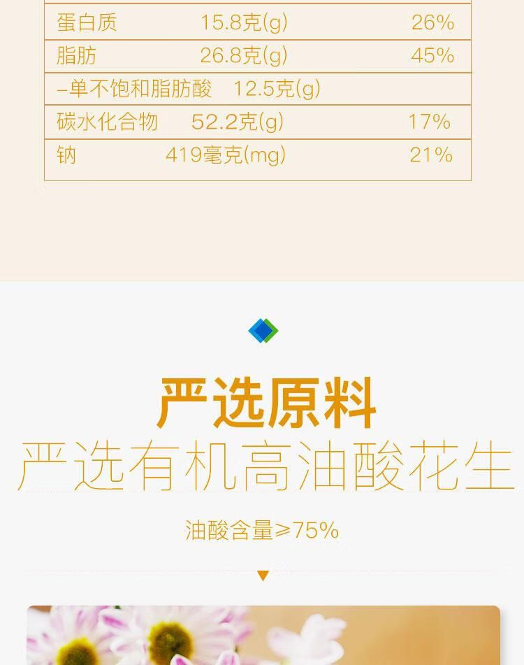原料选用有机高油酸花生,原料花生仁油酸含量>75%,添加纯松茸粉