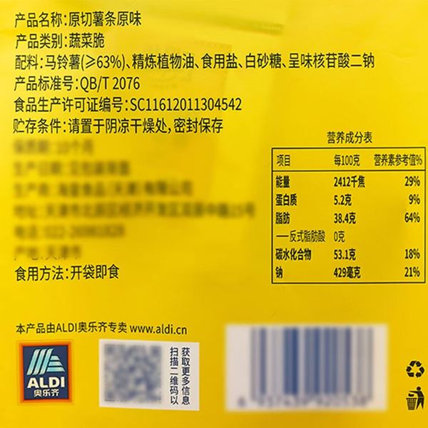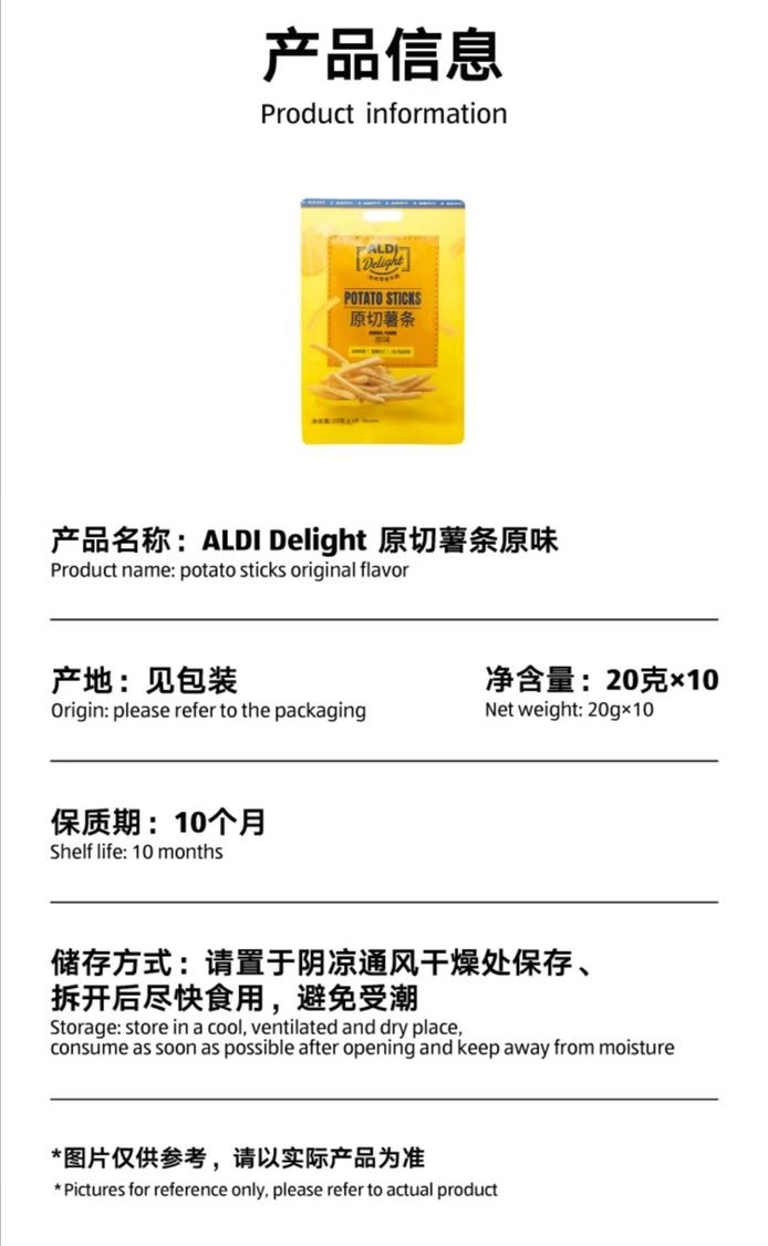 Aldi Delight原切薯條原味20g*10 *1奧樂齊Aldi Delight正品專業代購 奧樂齊正品專業代購