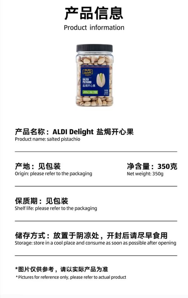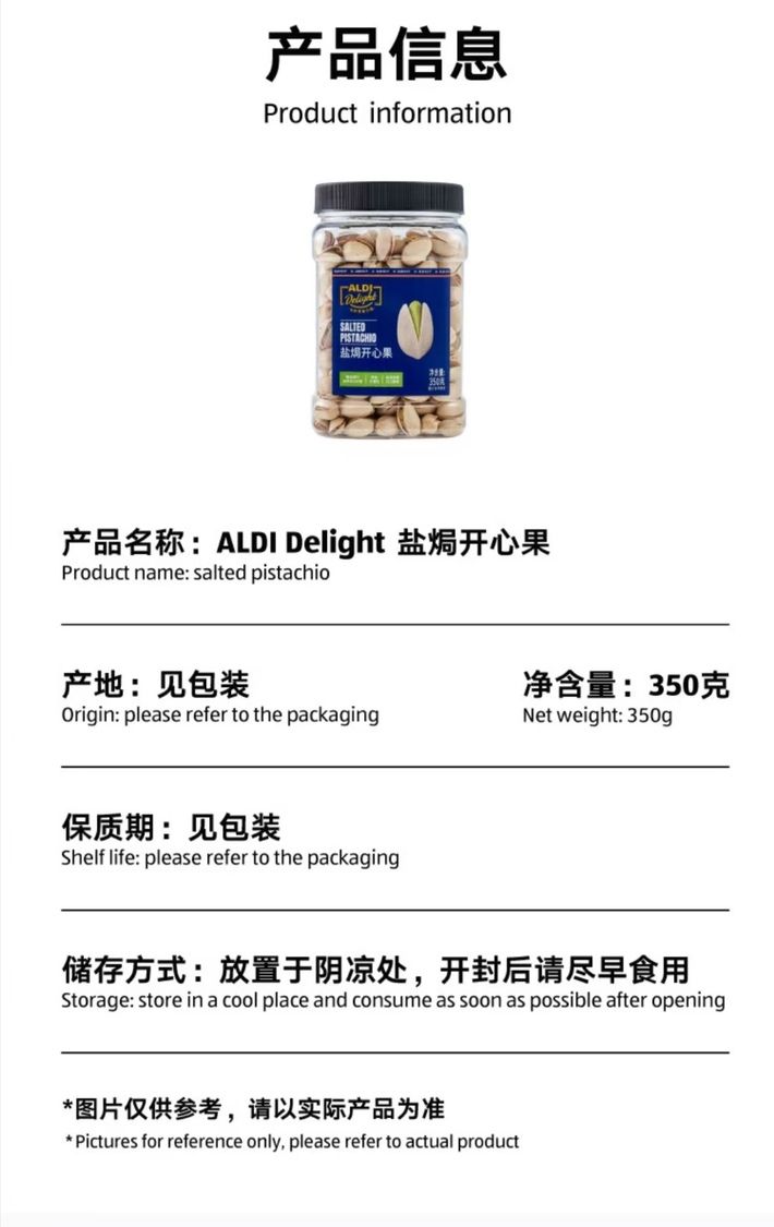 Aldi Delight 鹽焗開心果350g奧樂齊Aldi Delight正品專業代購 奧樂齊正品專業代購