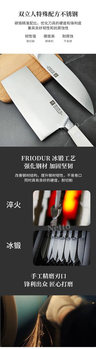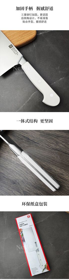 德国原装进口 双立人中片刀 可切可片多用途厨房利器 质感十足 286周年纪念创意之作 浑然天成 出彩匠心 精美包装专为礼品定制 始创于1731年 不止为切菜 更为审美而生 色彩视觉收纳 简单主意浪漫 颜值之外 一把好刀 特殊配方18/10不锈钢 碳与铬较佳比例下实现优良的硬度与锋利度 真正刀锋如镜 刀面FRIODUR冰锻工艺 冰火淬炼 具有出色的柔韧性和抗腐蚀性 人体工学刀把 特殊防滑处理 带来流畅的切割体验 45度刀面磨抛 触感光滑 质感立现 286年匠心传承 降低粘附性 更方便清洗 。