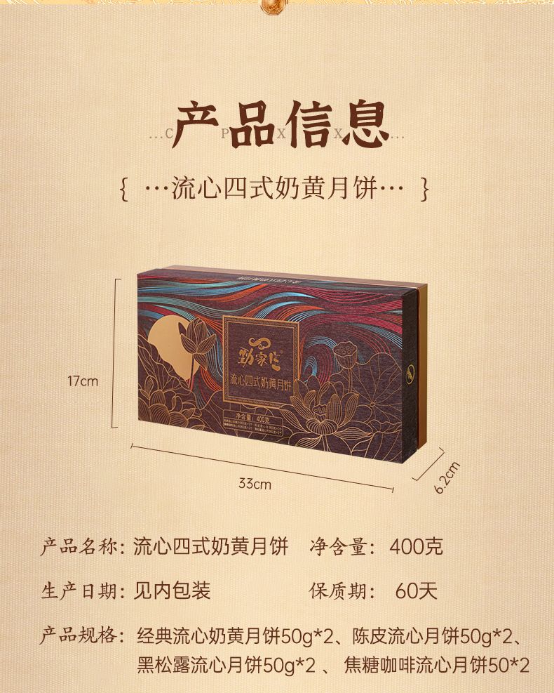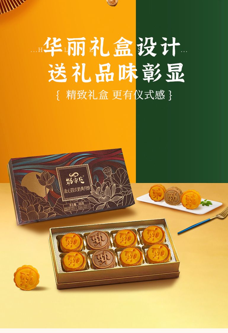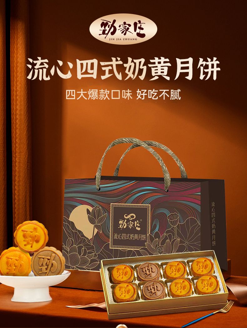 勁家莊四式奶黃流心月餅400g傳統糕點中秋送禮佳品