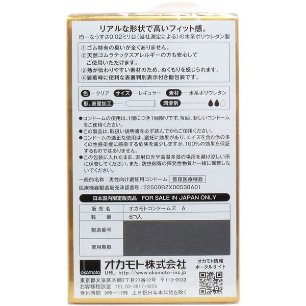 岡本 0.02 雙倍潤滑 薄度均一 安全套 6片裝 (日本製造)