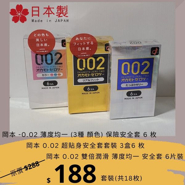 岡本 0.02 超貼身安全套套裝 3盒共18枚 (日本制)[平行進口商品]