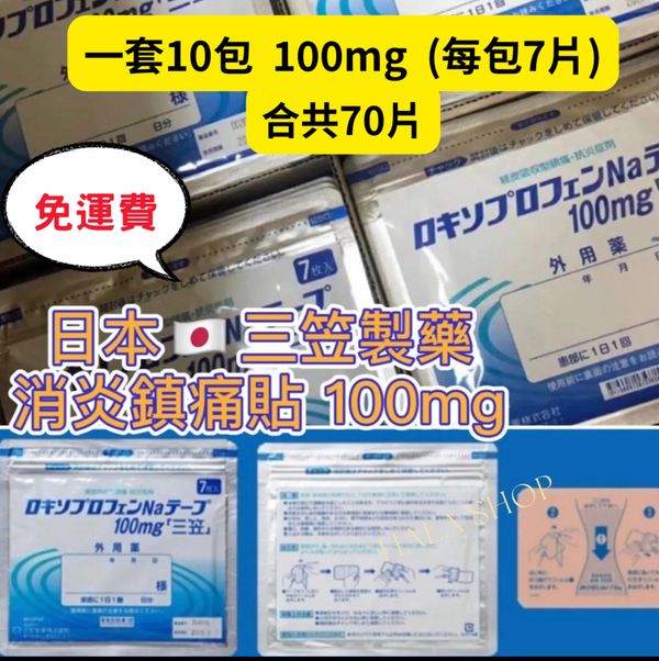 現貨日本三笠製藥 強力消炎鎮痛藥貼 100mg(一包7片 x10包)70片 速止痛及消炎/肌肉關節問題/扭傷/拉傷/加強版安美露(有效期2028年 )