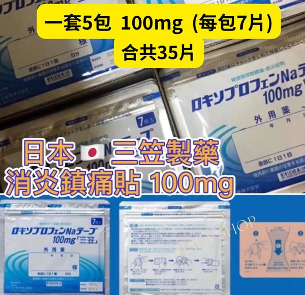 現貨日本三笠製藥 35片強力消炎鎮痛藥貼 100mg (一包7片 x5包)貼布|消炎 鎮痛 |膠布|舒緩|肌肉酸痛|(有效期2028年 )