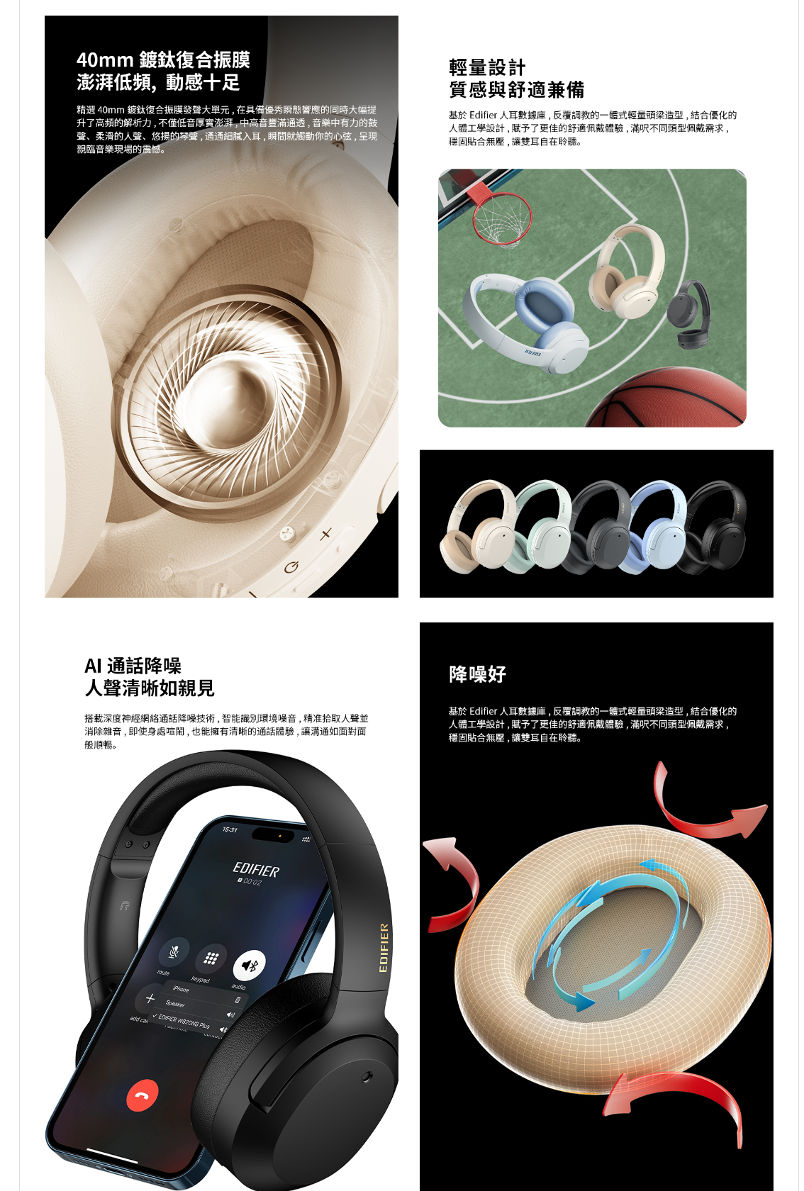 EDIFIER - W820NB Plus 降噪無線耳機 -象牙白 原廠行貨,1年保養